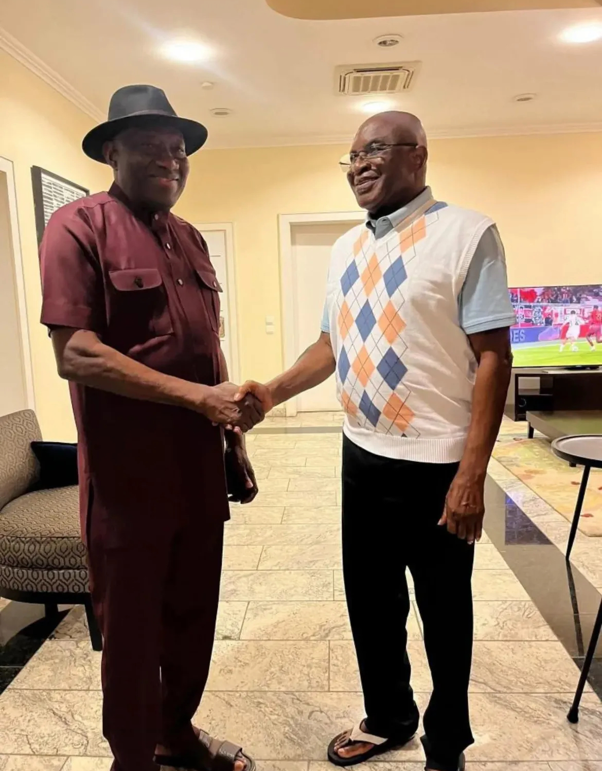 Former President Goodluck Jonathan has held a closed-door meeting with Senator David Mark, Chairman of the African Democratic Congress (ADC), sparking widespread speculation about possible political alliances and strategic discussions.
